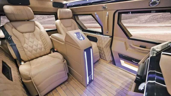 接下来就是重头戏了,后排座椅的介绍。乔治巴顿最大的卖点就是它钢铁盔甲的外表下实际藏着奢华、舒适的座椅,让乘坐者可以从容体面的通过那些崎岖的路面,让土豪买家们圆了舒舒服服去越野的梦。乔治巴顿越野车是一辆内外反差非常大的车,它既拥有良好的越野能力、霸气外露的外观,还拥有奢华的座椅、宽敞的乘坐空间。它非常适合那些需要在一些烂路通勤的土豪,或者买家只是喜欢它那霸气外露的外观,不过300多万的售价和巨大的车身注定它只是少数人的玩具。