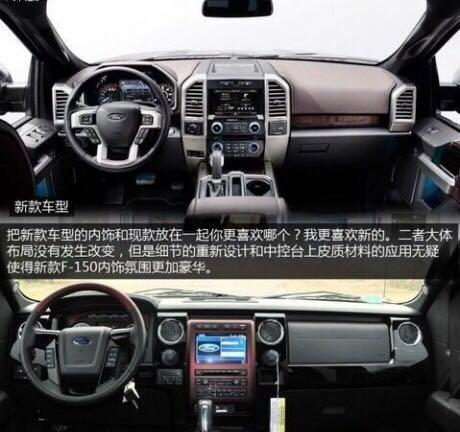 17款福特猛禽F-150为车内提供了全新的MyFord Touch系统,HID氙气大灯在豪华选装套件中提供,不过需要额外支付4760美元,其中还包括了带加热和通风功能的电动调节前排座椅、自动折叠的踏板、双温区空调、导航、遥控启动、带加热功能的电动折叠后视镜和一套拖车监控系统。