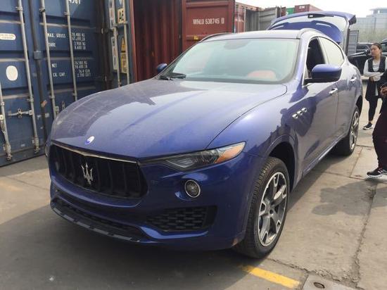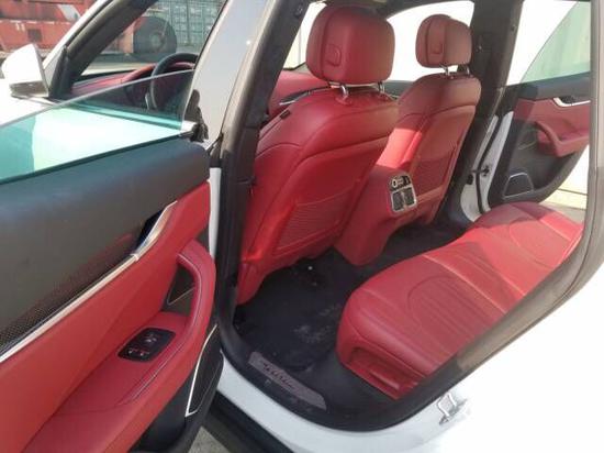 玛莎拉蒂Levante车辆前脸,可以看到玛莎拉蒂的家族化进气格栅以及分体式的大灯。前保险杠将中格 栅与雾灯装饰罩做成了一个整体,两侧则加入了LED日间行车灯。车辆尾部采用了家族化的三角形尾灯 以及双边四出的排气管结构。