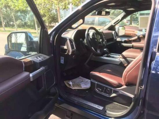 更多详情请致公司咨询电话:113622119149 梁经理(可微信)福特猛禽F150内饰方面:采用独特的中控台和门饰板面漆和真皮包裹的方向盘。中控功能区域可分为三个小控制区,最上端为音响控制及导航控制,中间为收音机调节控制,最低端为空调及座椅加热控制。