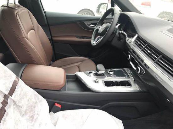 内饰方面:17款欧规奥迪Q7的内饰造型是典型奥迪风格,材质高档、做工精细,真皮座椅和方向盘、深棕色木纹装饰的点缀都体现出了低调的豪华感。还有仪表盘的水滴造型很别致,中控台的功能键排列有序,在排挡杆的周边,布置了MMI多媒体交互系统和一键式启动按钮,体现出奥迪崇尚科技的一面。