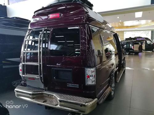 福特E350房车每一台都安装了超大的专属镀铬进气格栅和后保险杠,氙气大灯和LED尾灯则是福特E350的原厂配备。双片大尺寸后视镜、前/侧/后方倒车影像以及车侧用来提升档次感的边灯都是标配,硕大的车身不仅需要档次感,也需要这些实用的安全配备。