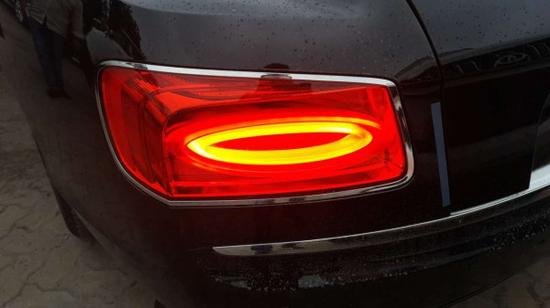 17款宾利飞驰的前大灯变为外侧大、内侧小,下部的进气格栅被拉长到贯穿车头左右,并带有水平镀铬装饰条。宾利飞驰身侧的装饰巧妙的与品牌标识结合到了一起,无不显示着它的美。原来的直立部分变成横向镀铬饰条,使全新飞驰的前脸更富视觉冲击力。