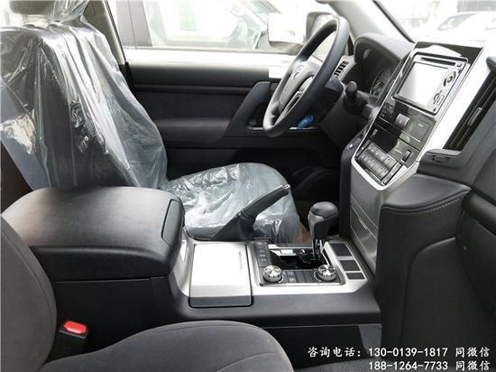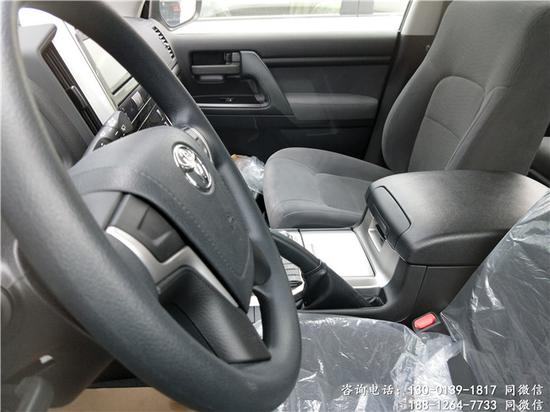 2017款丰田兰德酷路泽4000中东版操控台没有过于繁杂的操控按钮,多功能方向盘方便了驾驶员的操控,轻松驾驶。设计师并没有忘记它越野车的身份,所以你能找到很多硬朗的线条,其实用性和舒适性更可媲美豪华轿车。中控台换成了具有磨沙手感的金属板件,增强了内饰的质感。上方为多功能显示屏,中间为音响控制系统,左右两侧为空调出风口和空调温度控制按键。