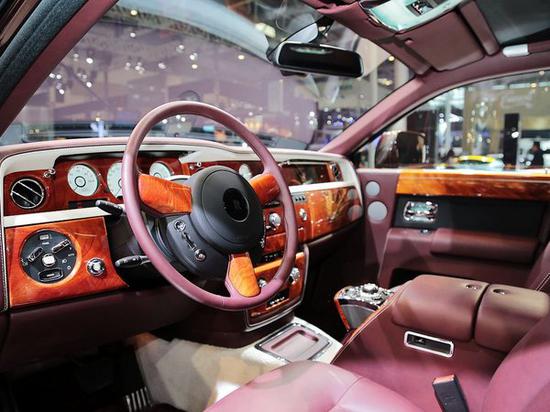内饰方面:劳斯莱斯幻影是结实耐用和感性化的代表作。该车采用的皮革隐隐地散发着牛的气味,在幻影车上,公众还能看到最高水准的手艺和最优质的材料。每一辆劳斯莱斯都需要精心挑选颜色、质地、层板和设备。