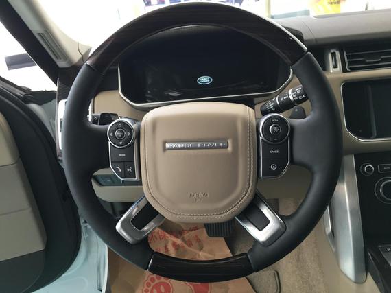 设计方面:路虎揽胜行政版前脸的造型与普通版车型相比没有任何区别,依旧是路虎家族的设计,层次分明,充满了力量感,日间行车灯特殊的造型也大大提高了车型的辨识度。想要控制好这样一台庞然大物,仅仅靠老司机是不够的,还需要一套360度全景倒车影像系统,可以看出前杠上集成了四枚雷达以及两枚摄像头。