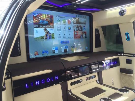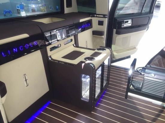 林肯领袖一号后排的空间和配置令人眼花缭乱,高清晰液晶电视,侧面2个7寸液晶显示屏,桃木内饰/酒吧/冰桶,可升降分隔屏,中间电动私密升降隔屏等一系列奢华配置。增添了新式整车包围,这让车体看上去更显浑厚有张力,突出了美国车的硬朗感。