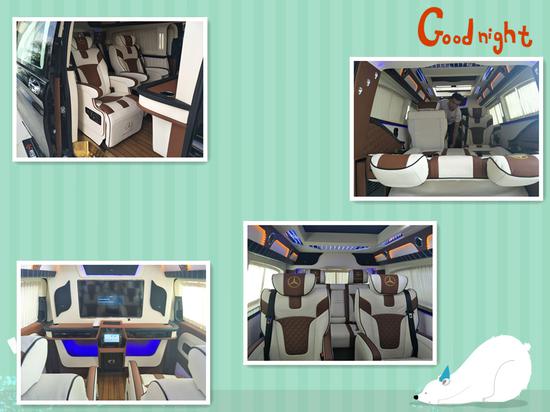 本集团:主要从事奔驰 房车改装、商务车改装、制作汽车满天星等业务,福建奔驰新威霆 V260L 为各种类型的商务车、房车和特种车提供优质内饰改装服务。我们为您提供的内饰改装包括:电动豪华旋转座椅,电 动折叠座椅/床,车载办公桌,车内隔屏,DVD导航音响与车载电脑系统,全车内饰包皮包覆、豪华升级等。房车内应有的卧室、厨房、卫生间、橱柜、酒柜、冰 箱、电视等家具家电一应俱全。可根据不同客户的要求进行私人定制,为您打造时尚个性专属座驾。