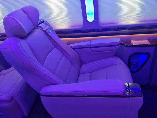 解决座椅舒适性不足的最佳方案。顶级OTTOMAN头等舱航空座椅,源自世界高端科技,是该款车型的尊贵之核心。视觉上包裹感十足,米色外观、三面六项调节蝴蝶枕设计凸显了尊贵的身份;意大利高级NAPPA真皮皮套、高回弹海绵坐垫,为您提供柔软舒适的依靠感,更显高档;电加热通风系统、电动按摩系统等功能,更快的缓解旅途疲劳,让您和客户享受舒适之旅;三面六项调节蝴蝶枕,随心调节,总会找到适合您的姿势,彰显人性化设计。