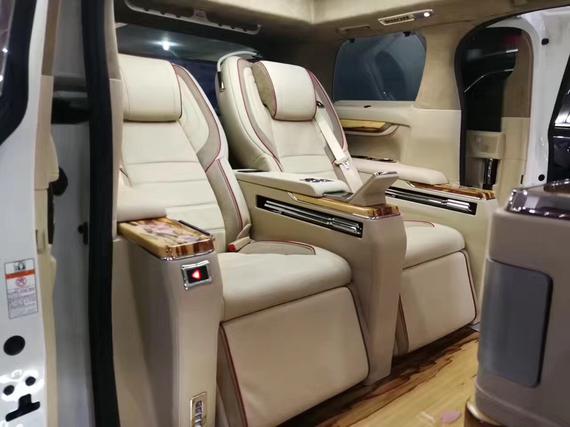 内饰方面:丰田埃尔法拥有三面向头枕、独立扶手、扶手置杯架、多功能折叠桌,埃尔法商务房车以及椅背最大78度仰角;埃尔法前后共拥有450mm滑移长度与高度脚踏垫设计。