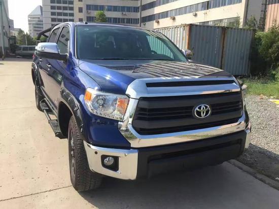细节方面:丰田坦途外形设计具有明显的美式风格,宽大的进气格栅几乎占据了整个车头部,与边角略微上扬的车灯组成了近似牛头的图案。丰田坦途1794限量版的设计还是更为接近于工作。
