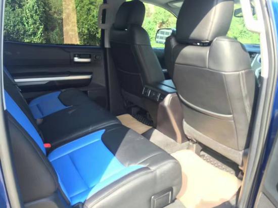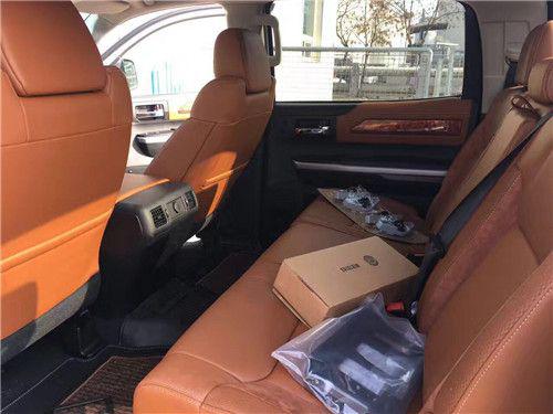 17款丰田坦途1794版加版方向盘后面就是整齐清晰的仪表,后排座椅非常舒适,椅背的倾斜度适中,腿部空间也很大,长途旅行时后排的乘客不会感到疲惫感。还增加了天窗、多功能方向盘、智能语音操作系统以及倒车影像,这些豪华配置使得坦途更具备轿车的舒适性。