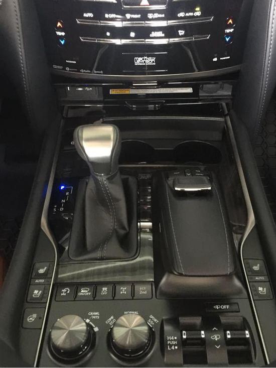 内饰方面:雷克萨斯LX570中控台及仪表台上方的材质为软性真皮包裹,材质优越,按键及按钮手感好。仪表盘和音响系统控制面板遵循LEXUS雷克萨斯未来设计风格,呈现简洁与易操作的特点。四幅多功能方向盘样式显得很稳重,排档杆面板及行驶模式控制面板都呈现厚实的金属感。