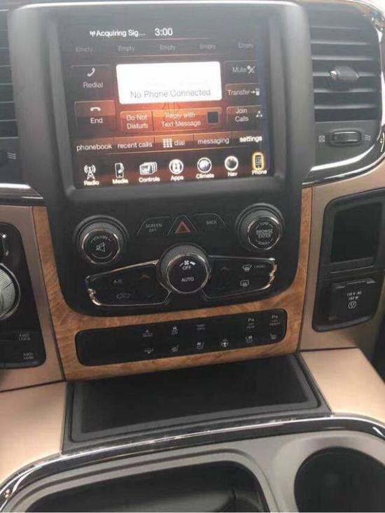 内饰方面:17款道奇公羊规整的中控台设计看上去比较死板,但丰富的配置会让你不由得为其称赞。中控台的设计简洁硬派,符合公羊的气质。2017款道奇公羊车型全部座椅均采用真皮包裹,前排还配备了十分实用的运动座椅。2017款道奇公羊在空调系统上,双区自动空调自然是必不可少的,后排也有独立的出风口。