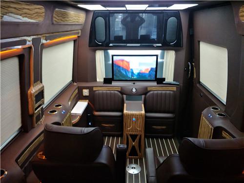 。2驾驶座+2航空按摩座椅+2航空按摩座椅+3连排沙发床,第二排座椅可前后旋转,中间搭载了一张可拆卸的老板桌,丰富了车内布局,满足专业商务的谈判需求。座椅加宽设置,线条感强,并且填充物相当厚实,质地软硬适中,来一次真正的长途出行,你才会感觉到何为“坐的舒畅”!