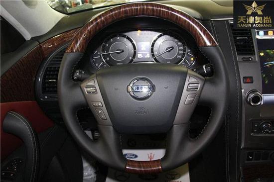 17款日产尼桑途乐舒适的真皮座椅配以镀铬及木纹装饰的豪华中控台使内饰品质得到质的提升。17款日产尼桑途乐的方向盘为电动调节,左侧有很多控制键,比如大灯清洗、反光镜调节等等。