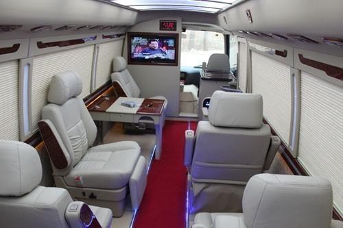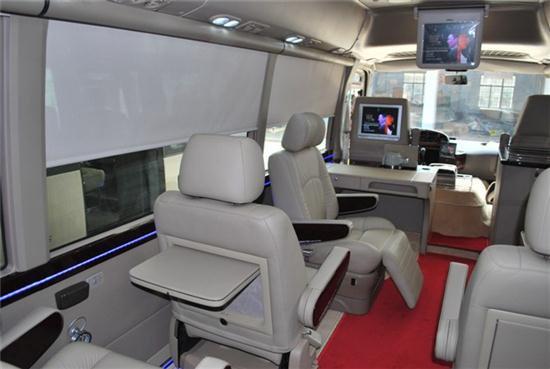10、滑动门转臂支架装饰罩:滑动门转臂支架装饰罩。 11、中门扶手包真皮:中门扶手包意大利NAPPA真皮。 12、首长席航空座椅:高档首长座席由真皮航空座椅构成,根据人体工程学设计的弧度,使人体乘座更加舒适、贴切。让更贴合乘客的移动办公需求,让领导感受超乎寻常的尊贵感和舒适感。 13、侧壁更换蒙皮:侧壁更换意大利顶级真皮,手感舒适,侧壁菱形格的设计使整车层次分明立体感更强。14、豪华电动窗帘:窗帘面料阻燃、隔热、隔光、隔音。 15、顶棚更换蒙皮及塑料件改色:顶棚更换意大利顶级麂皮绒,零污染零伤害的环保材质,塑料件仿麂皮绒色,菱形格的设计使整体视觉效果达到最佳。16、实木桃木纹侧壁压条:光鲜亮丽、易清洁。 17、空气净化器:具有抗菌、除尘、除醛、除苯、消烟、补充空气维生素(负离子)等多重功效。 18、LED灯与长型荧光灯:特殊的灯光设计,保证了车内足够的亮度,且不会有刺眼的感觉,行车过程中即保证了车内办公的需要求又不影响驾使员行车安全。 19、地毯:、阻燃、防污、抗踩踏,而且还具有多种天然功能。吸收空气中的污质,改善室内空气质量,提供了一个舒逸、温馨的生活环境。 20、全车隔音:a、进口环保双层隔音板,起到隔开底板噪音的功效