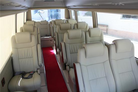 商务车接待车不仅仅只是一款车,也代表了一个公司的形象与实力,如果选择这款旗舰版考斯特12座,带给你的或许是生意上的成功。首长席豪华航空座椅,秘书席豪华航空座椅,豪华四联排电动沙发床等,都是选用澳洲进口真皮打造,质量上信得过。32寸液晶车载专用显示器,5.1声道环绕音响,冰箱,饮水机,都是比较不错的选择。