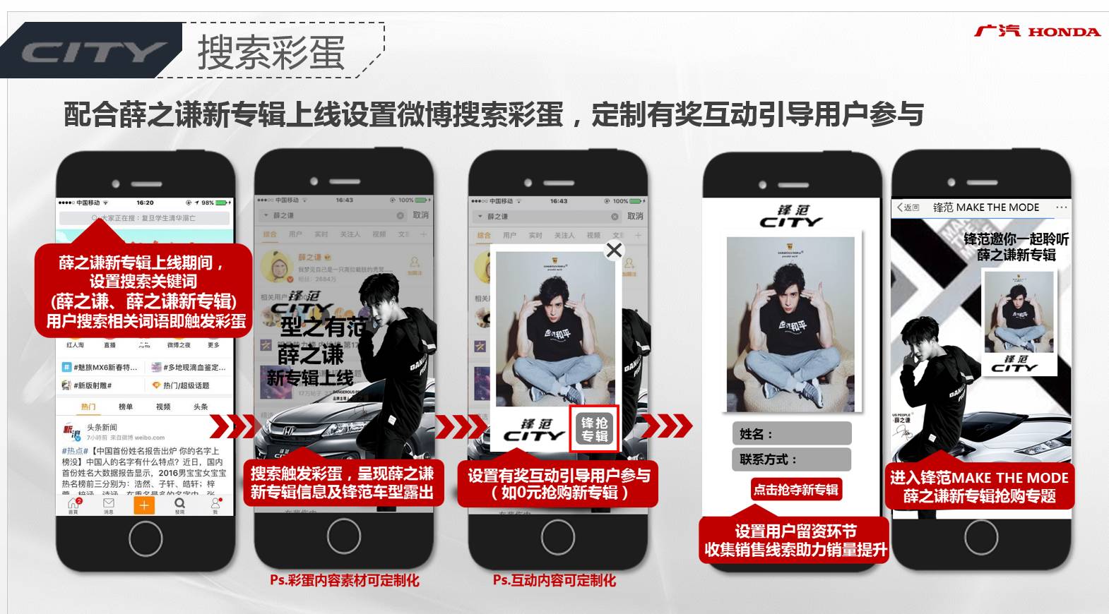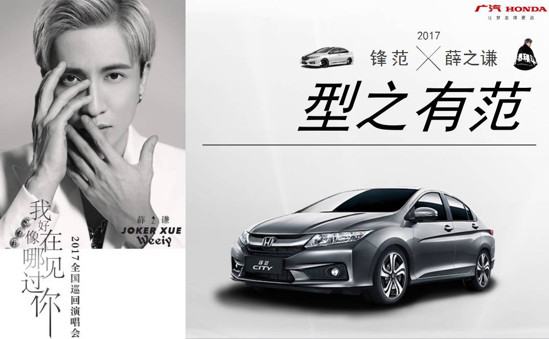 后来,薛之谦也表示将会继续进行系列的活动宣传与报道,比如此次的“2017薛之谦世界巡回演唱会”就又是一个“跨界整合营销”的经典案例,让早就与薛之谦有深度合作的广本锋范顺利借势,凭借薛之谦的话题热点,顺势引爆。