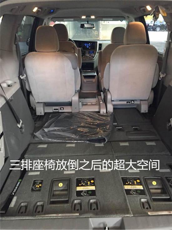 2017款丰田塞纳两驱LE加版新车集大气于一身,不需要奢华来修饰,一样能得到广大消费者得青睐, 简简单单方便使用,体现出商务风采的一面。新塞纳上挑的线条与修长的前大灯完美结合,中网和大 灯的设计很有美国范儿,采用18寸的大轮毂,配置绝对足量。不仅有着高大的车身,同时硬朗的腰线又让这部商务车充满了力量感。晶钻式大灯充满时尚感,线条炉火纯青的运用使得豪华感倍增,大面积的红色LED尾灯在夜间有不错的辨识度保证安全。丰田塞纳车门滑轨被隐藏在了玻璃下方,丝毫不破坏车身整体营造出的这种流线感。