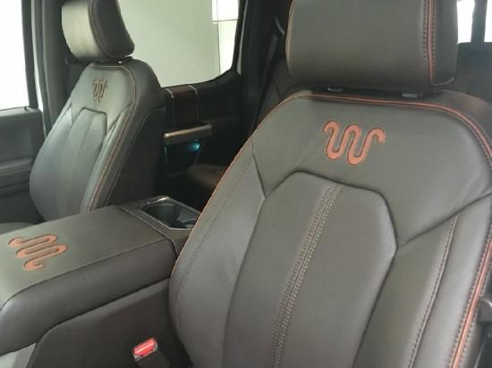 福特F150国王牧场版的内饰风格并不像它的外观那样威武霸气,棕色色的内饰搭配国王牧场刺绣装饰看上去更加奢华