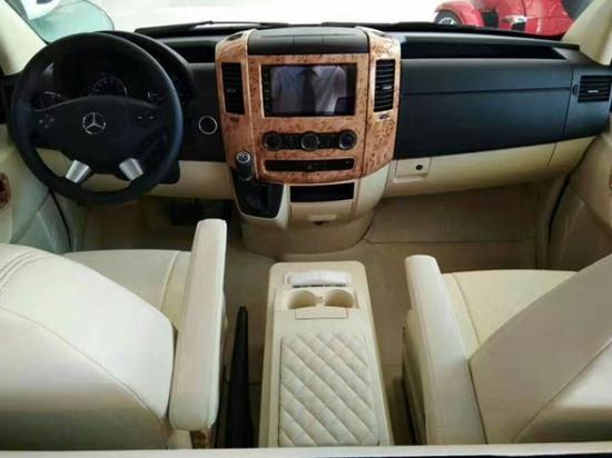 奔驰斯宾特商务房车的内饰配置:真皮包裹方向盘、迈巴赫全景灯、星空顶、后排可拆卸小桌板、游艇级柚木地板、隐藏式办公桌、全隔断升降系统、豪华风情电动窗帘、全车强化防护降噪定制豪华吧台、航空机独立按摩座椅 7+2全自动隐藏座椅全车座椅真皮制作,细节处理入微至细,做工十分精良。根据人体工程学设计,配置电动按摩加热系统,以及电动调节方向功能。中排座椅可360度旋转,与后排座椅形成对座模式,中间地板上设置有卡扣,安装上总裁会议桌,便形成了商务模式。