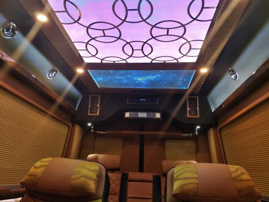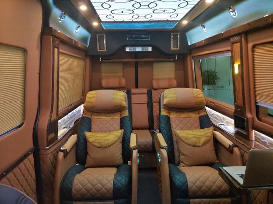 2驾驶座 2七星级座椅 3连排沙发床+2隐藏式吧台椅。奔驰斯宾特云锦版座椅采用7+2格局设计,奔驰一生病他为不同的出行场合,随机应变出不一样的车内格局。