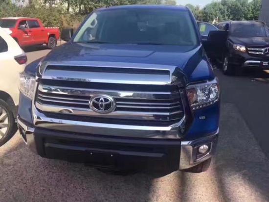 外观方面:2017款丰田坦途宽大硬朗的车身,粗犷有力,凸显美国车的风范,前脸明显外张的 挡泥板以及前突的坚固格栅尽现强悍风格,视觉上极富冲击力,2米左右的车身宽度和高度造就了整体 高大威猛的态势,而接近6米的车身长度,又将它看似“笨重”的身体横向拉长,镀铬的外后视镜与车门把手既美观又实用。咨询热线:15122487779郭经理(微信同号)