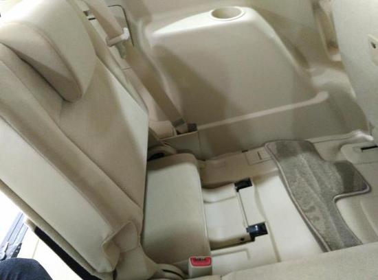 第三排座椅坐垫下面有拉手可以把座椅拉出来,很不错的设计。