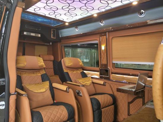 2驾驶座 2七星级座椅 3连排沙发床+2隐藏式吧台椅。奔驰斯宾特云锦版座椅采用7+2格局设计,奔驰一生病他为不同的出行场合,随机应变出不一样的车内格局。