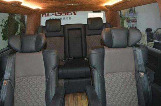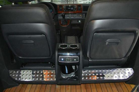 这款基于大众凯路威打造的改装车与其他改装的商务车很相似,外观基本没有什么太大的变化,着重对内部成员空间进行了舒适性和功能性方面的提升,主要的变化在于内饰的改造和配置的添加上,显得更加豪华,感觉更加舒适。凯路威原本的2.0TSI 204马力发动机保持不变,4MOTION全时四驱系统也予以保留,车内配备了真皮内饰、真皮座椅、组合钟表、LED灯光系统,电动窗帘、游艇柚木地板等。