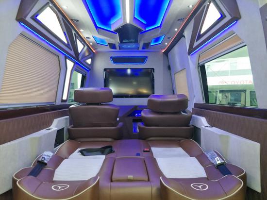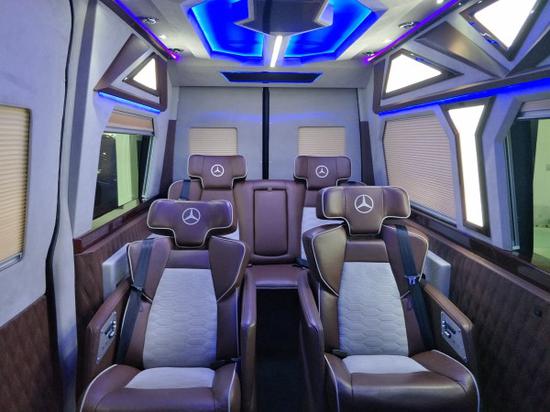 迈巴赫车顶灯光,斯宾特7+2版是一款专门为商务人士打造的商务车,以高标准、高配置为特点,他代表了奔驰品牌最顶尖的设计和最豪华的配置,是一款大气、豪华、尊贵的豪华级商务车。衬托奔驰斯宾特的独特之处。LED温馨氛围灯、内饰灯、壁灯,照耀整个车舱,即使黑暗,也无惧。电子影音方面,前舱主机导航大屏DVD主机——配备独立影音,40寸高清液晶电视(可升降系统),数字卫星电视,BOSE 5.1环绕移动影音系统,让你的视听觉更加冲击更加嗨。顶级商务房车奔驰斯宾特定制2017最新款价格