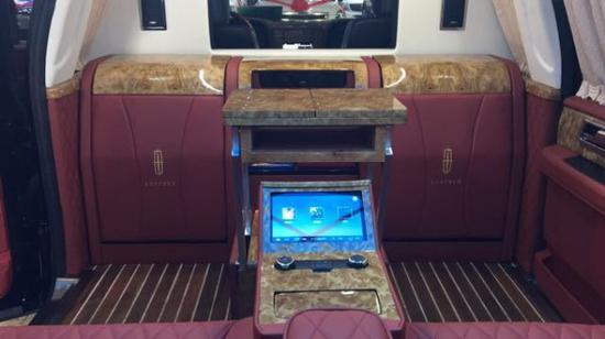 2017款林肯领袖一号布局上选用了6座布局,乘客区为对坐,两个航空座椅中心镶嵌的9寸触控屏集成了所有电器的控制。内饰上,全车都实行真皮包裹,做工精密,质量值得信赖。细节上220伏电源,USB充电接口,手机及平板电脑卡槽,无不表现着人性化的设计。24小时咨询电话:13207576962 小胡(同微信)