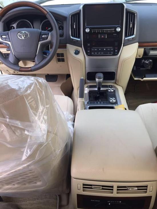 内饰方面:17款丰田酷路泽5700整个操控区域色调为 深色系,仪表盘、方向盘和排挡等位置均配以桃木装点,尽显豪华质感。不但具有DVD导航,这款车的倒车 影像还可以显示在内后视镜上;中央扶手箱还装备了冷藏 箱,这些都与中规版车型有所不同。酷路泽5700车内看着更明亮、同时也更显豪华,更符合中国消费者对“豪华”的定义。整个操控区域色调为深色系,仪表盘、方向盘和排挡等位置均配以桃木装点,尽显豪华质感。