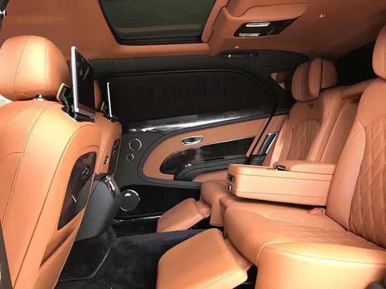 2017款宾利慕尚加长版拥有充满宾利元素的车尾,古典与现代完美融合,车尾自信的没有贴任何标识,不怕你不认识,镀铬饰条遍布内外,非常高端的样子,看见宾利如此嚣张的排气管,你很难想象他竟然是假的,真正的排气管隐藏在下面,听不到一点声音,非常安静。大客户经理:130-2221-9798 宋经理(同微信)。具体详情欢迎来电咨询。