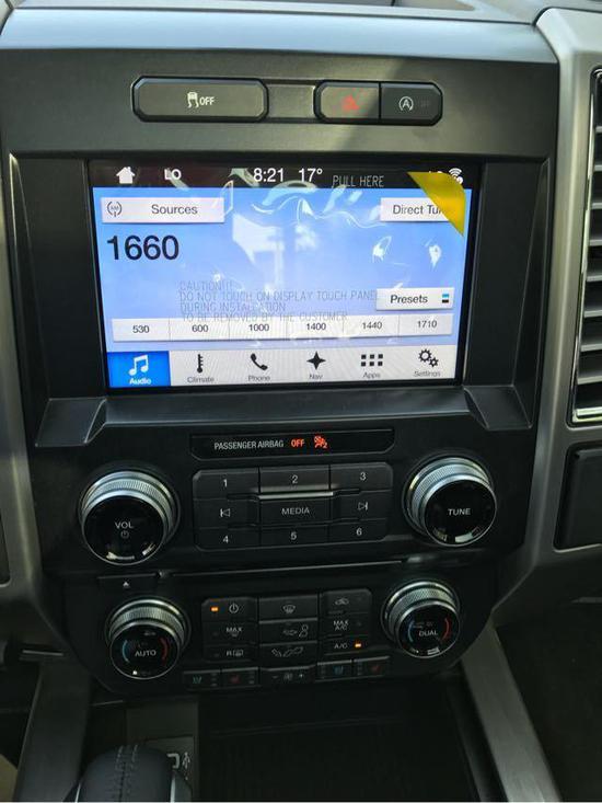 2017款福特F150配备标准独特的皮革和布艺装饰的座椅,驾驶员侧的电动十向调节。这些座椅同时具备记忆功能。内饰采用独特的中控台和门饰板面漆和真皮包裹的方向盘。皮卡可以单独选装豪华套装,豪华套装中包括了大量的舒适性的技术。