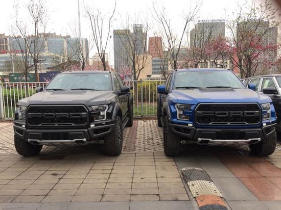 2017款美规版 加版福特F150猛禽,配置参考:801A包,LED灯,LED头灯,LED尾箱照明,滑动后车窗,脚踏,彩条,拖钩,轮眉,橡胶脚垫,10项座椅调节,前加热,110V电源,4*4系统,双驱空调,136升油箱,导航,密码车门锁,全地形管理系统,胎压监测,门窗锁,车身稳定。