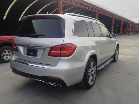 2017款美规版奔驰GLS500配置参考:4.7T,9速自动变速箱、真皮多轮廓座椅带按摩、前排电动座椅带记忆、雾灯、盲点辅助、主动泊车辅助、内外自动防炫目后视镜、真皮木质方向盘、全景滑动天窗、自动车道识别、胎压监测、空气悬挂、环车影像、二排空调、动态LED大灯、自动远光灯、小备胎、第三排座椅电动可折叠、隐私玻璃、21英寸AMG轮毂、AMG外观套件、前后座椅加热、智能卡、电动尾门、无钥匙启动、脚垫、后排娱乐、脚踏、行李架、室内氛围灯、三区空调、电吸门。