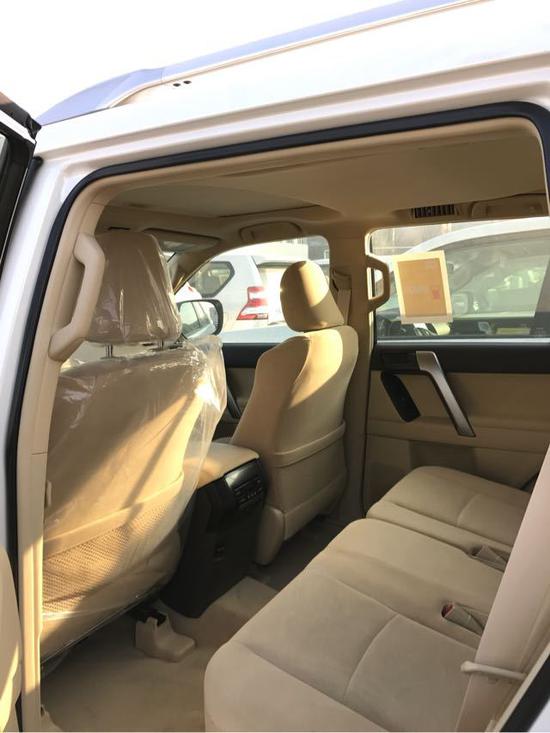 2017款中东版霸道4000配置参考:车辆稳性控制,主动牵引力控制,上下坡辅助,双气囊,7座,行车报警(安全带,门锁,超速),灭火器,150升油箱,天窗,丝绒座椅,前排座椅手动调节,手动双区空调,电动车窗,遥控电动中央门锁,方向盘助力,冰箱,6声道音响,外接音源+USB接口,真皮多功能方向盘,脚垫,胎压监测,电动折叠车外后视镜,后雾灯,卤素大灯,脚踏,车身彩条,尾翼,拖钩,265/65R 17寸铝合金轮毂,外挂备胎+备胎罩。