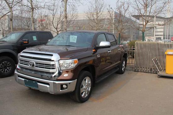 近日,天津分站获悉,丰田坦途皮卡之王1794版现车新款到店,最新市场行情报价。丰田Tundra皮卡是一款丰田TUNDRA外形设计具有明显的美式风格,宽大的进气格栅几乎占据了整个车头部,与边角略微上扬的车灯组成了近似牛头的图案。TUNDRA的设计还是更为接近于工作用卡车,所以它的尾箱也没有设计可以用于封闭的隔板。