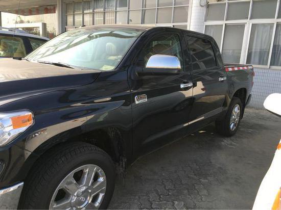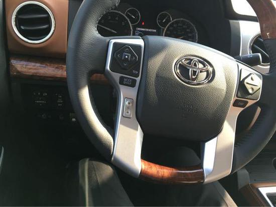 配置:丰田坦途1794版,6速,20寸轮毂,JBL音响,导航,天窗,真皮座椅,前座椅加热,多功能方向盘,双区自动气候空调,桃木内饰,拖车钩,镀絡中网,倒影,电眼,LED日间行车灯,10项座椅调节,桃木真皮方向盘,高级真皮座椅与麂皮、铬钢前保险杠,镀铬隔栅环绕,亮银色保险杠中心,独特的1794徽章,桃木真皮排档