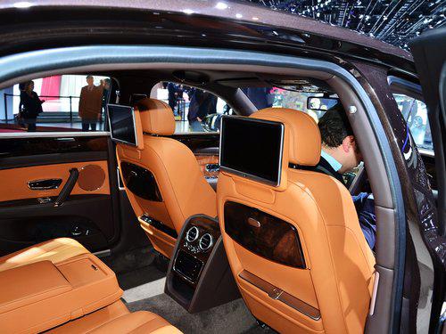 细节方面:真皮座椅的椅背及坐垫采用了大量菱形打孔处理,视觉效果很漂亮。皮质柔软,座椅填充物软硬适中,电动调节、三组记忆、加热通风以及按摩等功能一应俱全,无可挑剔。飞驰为后排乘客提供了一套名为TSR的控制器,能对后排空调、遮阳帘、娱乐系统等进行控制,这套触控设备整体用户体验还算不错。