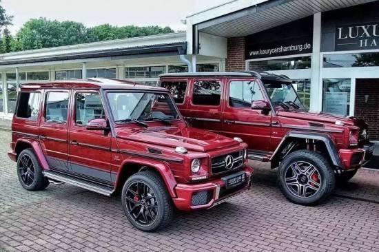 内饰方面:17款奔驰G500 4x4至于后座两张独立座椅部份,除了同步施以红色真皮材质包覆外,更采用了特殊的红色格纹缝线,打造出订制改装车款独特的奢华风格。