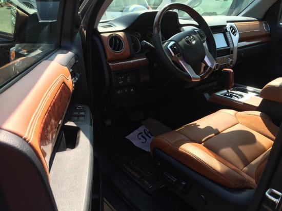 内饰方面:17款丰田坦途1794皮卡疯狂盛夏降价至冰点46万,17款丰田坦途1794皮卡夏日巨挥泪献优惠到底,2017款丰田坦途1794限量版选择了美式粗狂的设计风格,但是在内饰上我们仍可发现日系车细致设计的理念。中控台科技感十足,三辐方向盘延续了家族设计理念。金属、木材、皮革等多材料营造了相当豪华的视觉感受。