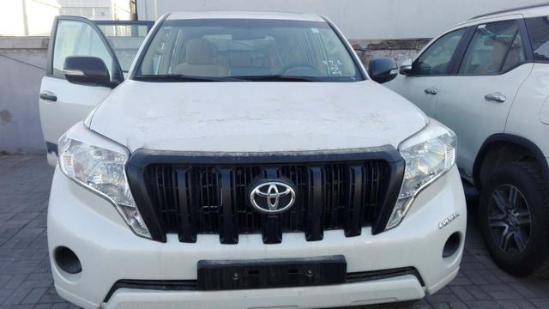 霸道2700 17款 TX 铝轮丐版 配置:无窗、6速,底挂备胎,2气囊,冰箱,多功能方向盘,VSC车身稳定系统,前后雾灯,胎压监测,前后倒车雷达,黑脚踏版,17寸合金轮毂,7座,米色丝绒座椅,黑色门把手后视镜前中网