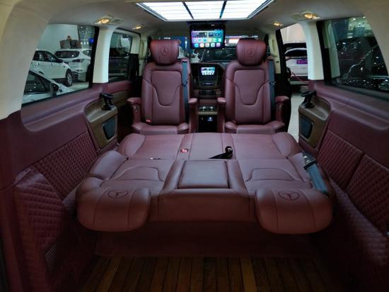 奔驰威霆行政,车厢座椅采用了2 2 2的模式,座椅设计得宽大舒适。前排两个独立的航空座椅可前后调节及360度旋转的座椅,并带脚托、座椅记忆,电动升降头枕、座椅通风加热功能,享受堪称“头等舱”级别,设计体贴入微。前排的左侧座椅前面还配有一个与驾驶舱通话的对讲机,方便乘坐员和驾驶员沟通交流。
