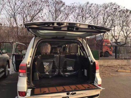 2017款底挂顶配丰田酷路泽5700配置参考:天窗、12气囊、八座、真皮座椅带通风、底盘升降、360度环影、雷达测距、蠕行系统、并道辅助、车道保持、八速、双差速、JBL音响、20轮、氙气大灯、全车镀铬、智能卡、前小杠、小尾翼、前后电眼、后视镜折叠、冰箱、后排娱乐、行李架、脚踏、胎压检测 、木地版、晾衣架、新款行李架、电尾门,大包围,1000米摇起。