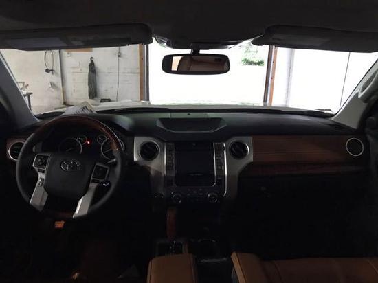 17款丰田坦途1794纪念版内部装饰更接近SUV车型,肌肉感的设计同样延续到内饰的设计中,木质的应用让这辆卡车拥有了几份细腻典雅的感觉。后排座椅的舒适度一般,乘坐质感较平。仪表采用橙红色指针读取信息非常醒目,车内中央车顶储物格及面板一气呵成,增加了空间利用率。