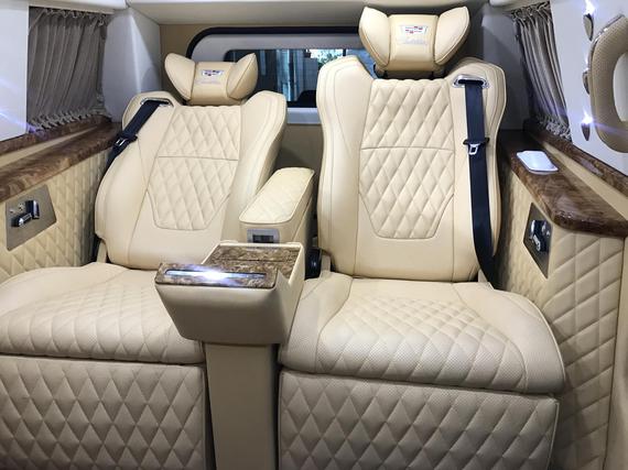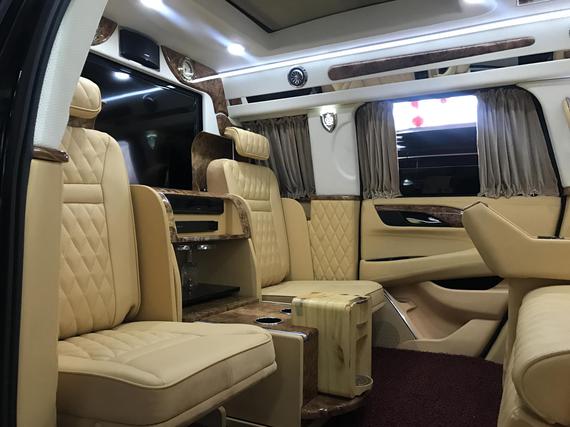 17款凯迪拉克总统一号内部为4 2座设计,前排为电动折叠座椅,座椅收起跟中间多功能实木吧台融为一体,形成更大吧台。后排为2个独立的电动按摩座椅带 通风、加热 按摩 腿托 靠背放平等。乘客舱所有的电器全部集成在后排座椅中间小吧台的屏幕上,操作方便简单。全车都采用酒红色真皮包裹,档次和豪华程度无可比拟。安全方面,防弹后尾门为您保驾护航。