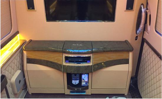 奔驰斯宾特房车通常选用前后舱全间隔式规划,保全隐私,前置豪华多功用吧台精约时髦,仿大理石式高光泽实木饰板,吧台中心躲藏式进口胶囊咖啡机、杯架,一杯咖啡、两盏淡酒伴你档次韶光。一键电动轻松操控吧台变型,2个精心规划的躲藏秘书座椅即刻舒展备用,索尼蓝光DVD播放器,BOSE影院级盘绕音响体系,影视原声震慑再现。